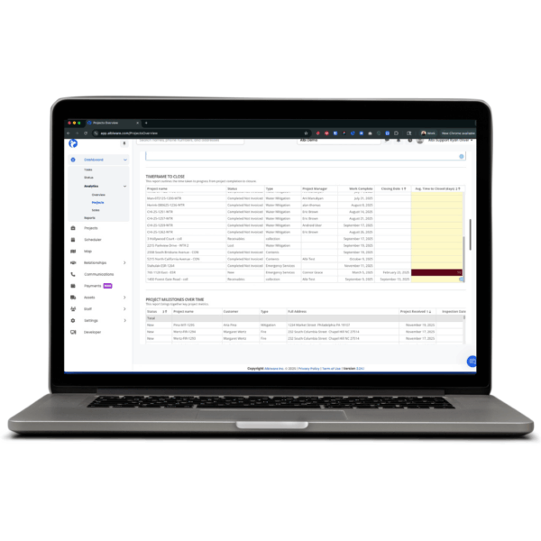With Aging Dashboards, Job Costing Reports, and Financial KPIs, track cash flow, collections, and profitability in real time. Break down performance by division, PM, or job type. Know exactly where your revenue stands—and where to act to improve margins.