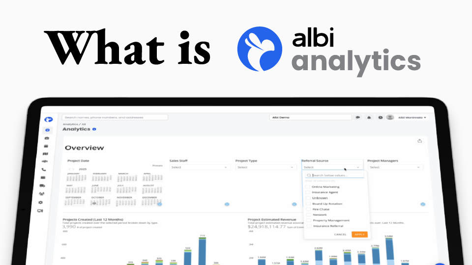 Designed specifically for restoration contractors, Albi Analytics focuses on the KPIs that truly impact profitability and performance