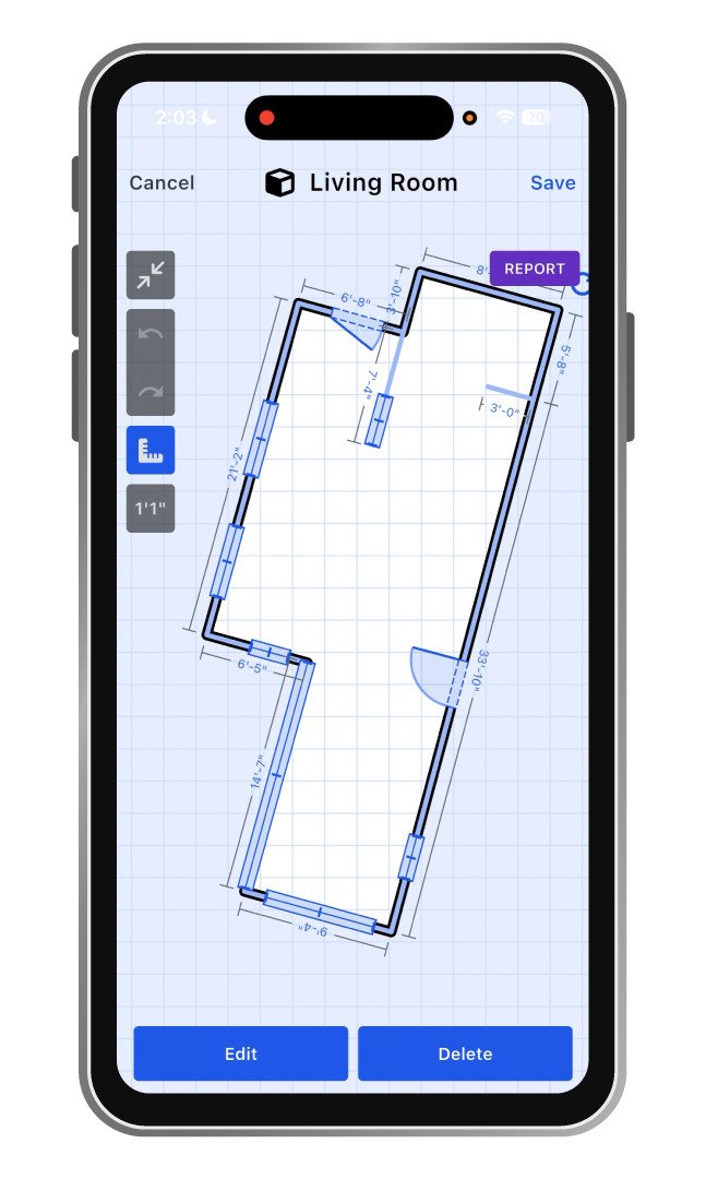 Albi Floorplans is built directly into your job management workflow. Walk the room with your iPhone, capture accurate dimensions with LiDAR, and generate a complete floor plan — all before you leave the property.